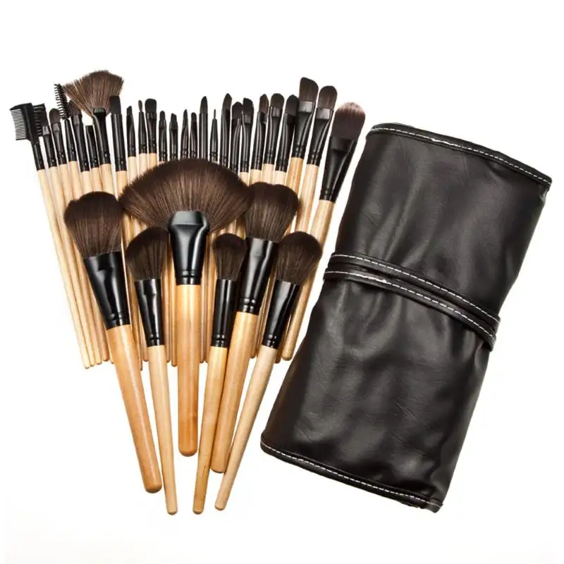 مجموعة فرش للمكياج مع حافظة الفرش بتصميم انيق نوع 15 قطعه و