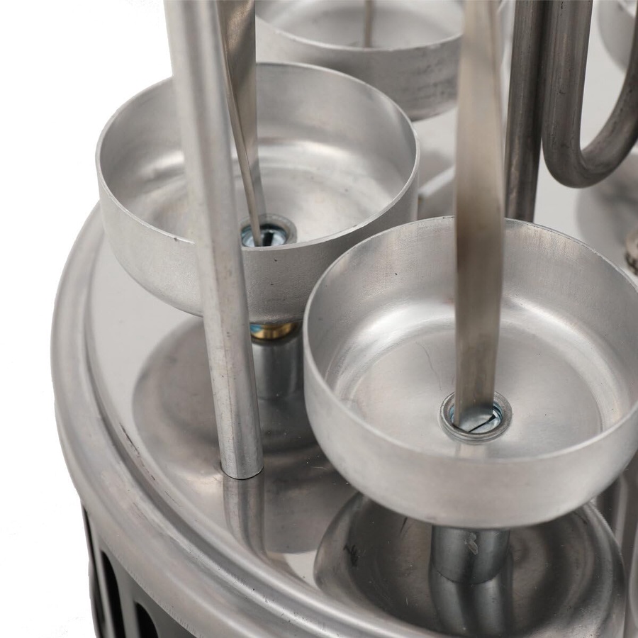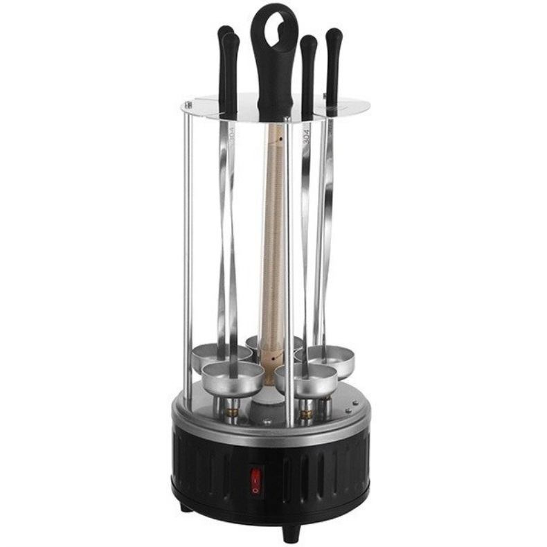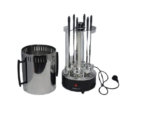 أبعاده تقريبًا 9.8 × 9.8 × 14.2 بوصة، وفي العلبة فيه 1 موقد شواء عمودي و 6 أسياخ.