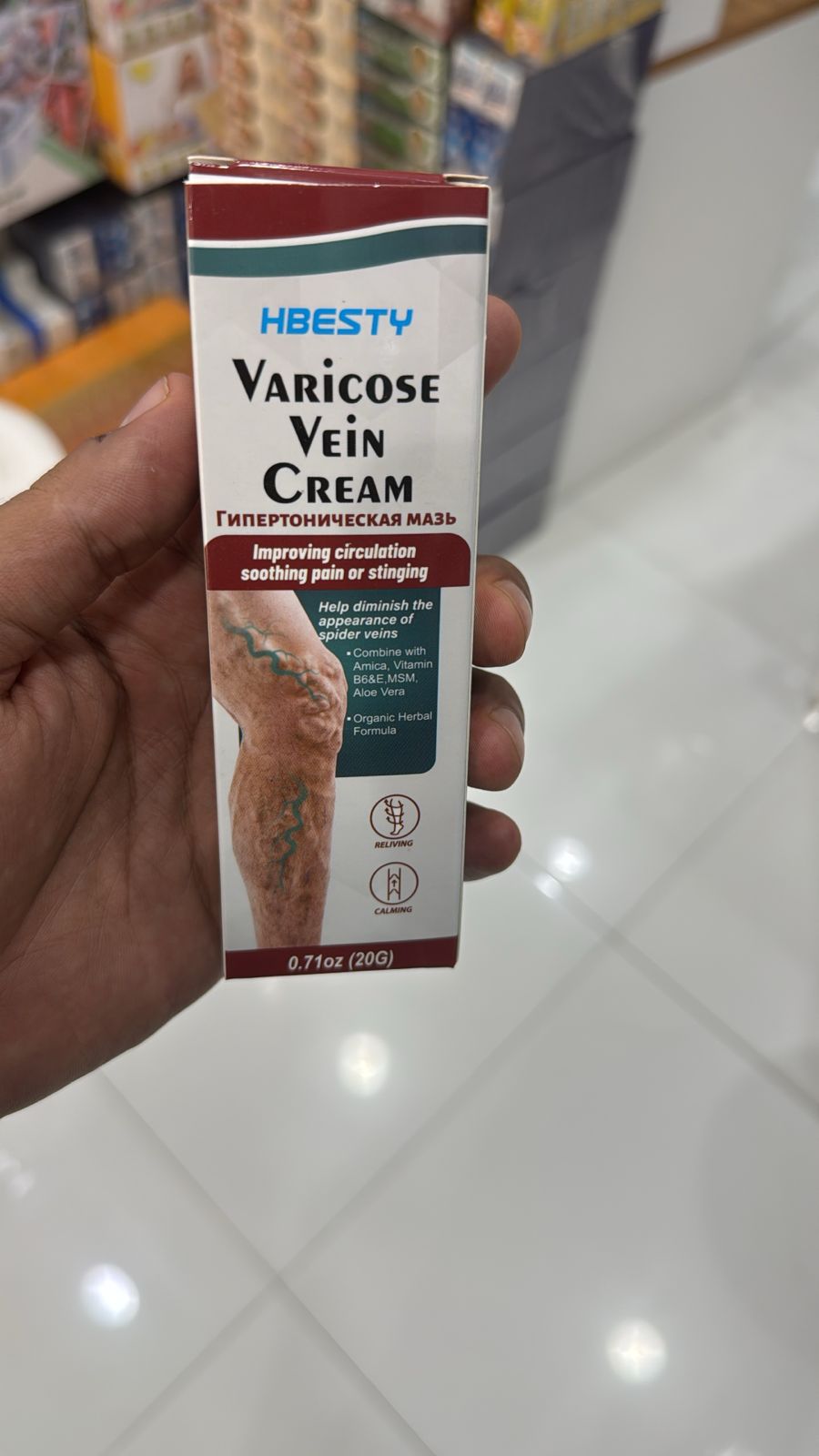 - 🦵 ودّع آلام الدوالي والتورّم مع كريم الأرجل الفعّال 💆♀️💨 راحة سريعة، نتائج مضمونة، وبمكونات طبيعية 100٪ 🌿 ● 🌿 تركيبة طبيعية عضوية تعتني ببشرتج من دون أي مواد كيميائية ● ❄️ يريّح العروق ويخفف حرارة وتعب الرجلين بسرعة ● 🩸 يحسّن الدورة الدموية ويقلل التكتلات العنكبوتية ● 💧 يرطّب الجلد وما يسبب حساسية أو تهيّج ● 🕓 نتايجه سريعة وتحسين واضح مع الاستخدام المنتظم *تفاصيل سريعة* - ✅ الاستخدام: على الأرجل والأوردة - ✅ الوزن الصافي: 20 جم - ✅ اللون: أبيض - ✅ الخامة: طبيعية وعضوية - ✅ الفئة العمرية: للبالغين - ✅ الوظيفة: تقليل الدوالي، التورم، وتحسين الدورة الدموية - ✅ طريقة الاستخدام: يوضع مباشرة على الجلد ويدلك بلطف - ✅ مناسب لـ: العناية بالبشرة، حالات التعب، الأرجل المتورمة - ✅ الحجم: صغير – سهل الحمل والتخزين