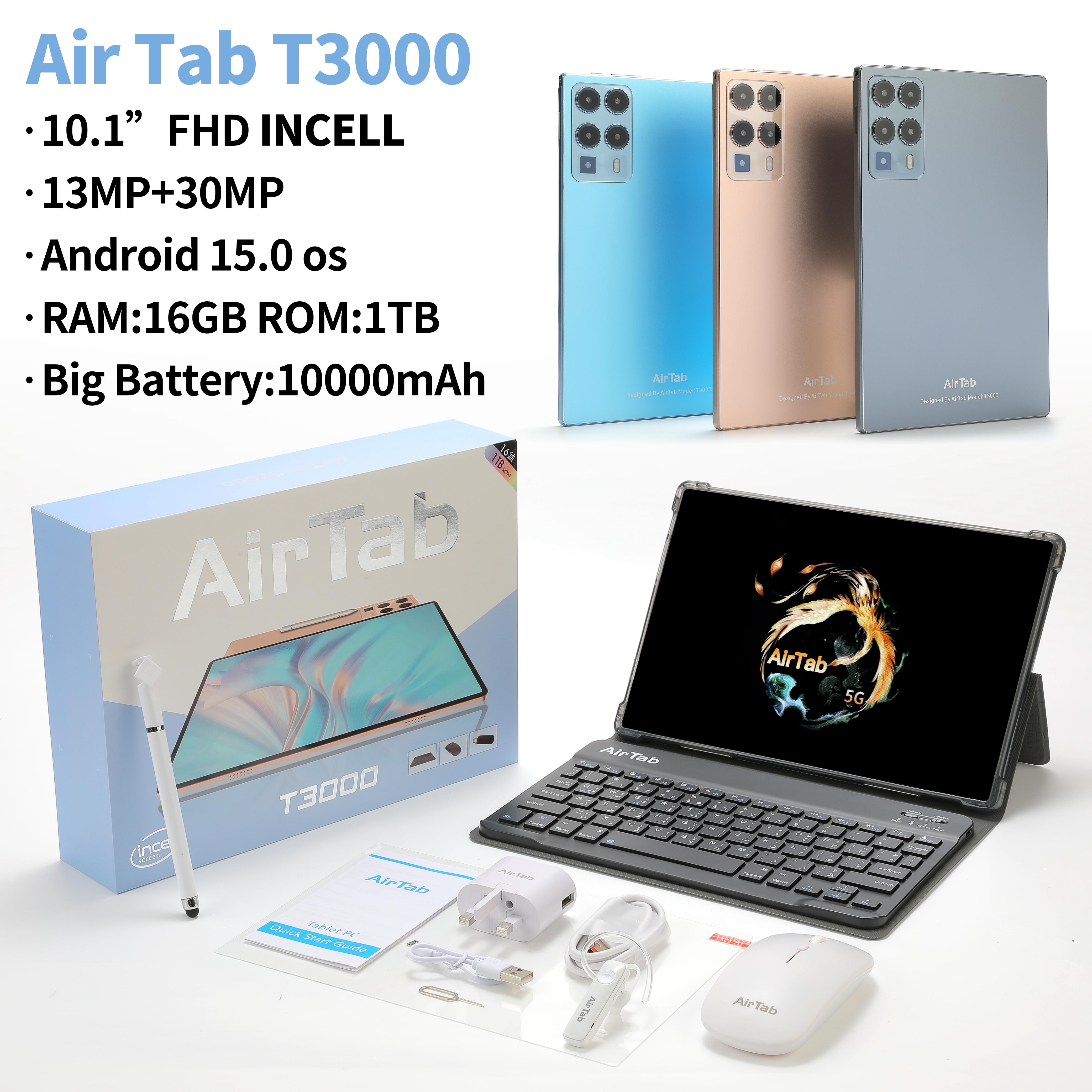 عيش تجربة حوسبة غير عن الباقي مع AirTab T3000… شاشة FHD 10.1 إنش، بطارية 10000 ملّي أمبير، وكيبورد وماوس وقلم ستايلس… وكل هالشي مع ضمان 6 شهور + سماعة هدية 🎧 شاشة FHD 10.1 إنش 🔹 وضوح عالي واستجابة لمس سريعة، مثالية للشغل أو الترفيه. أداء ثابت 🔹 نظام أندرويد 15.0 مع رام 2GB وروم 32GB يخليك تستخدم التطبيقات براحة. كاميرا مزدوجة 📸 خلفية 13MP وأمامية 30MP عشان صورك وفيديو كولك تكون أوضح. بطارية قوية 🔋 10000 ملّي أمبير تكفيك طول اليوم بدون ما تدور على الشاحن. إكسسوارات كاملة 🎁 كيبورد لاسلكي، ماوس، قلم ستايلس، وشاحن… جاهز للاستخدام من أول ما تفتحه. 🎁 الهدايا والإكسسوارات اللي تيجي مع التابلت كيبورد لاسلكي قابل للفصل، يحوّل التابلت لجهاز لابتوب صغير. ماوس لاسلكي لتسهيل التحكم. قلم ستايلس للرسم أو كتابة الملاحظات. سماعة هدية للاستماع للموسيقى والمكالمات. شاحن أصلي مع كابل USB. دليل مستخدم لتسهيل الإعداد. ضمان 6 شهور على الجهاز. 🎯 مثالي لـ: الشغل عن بُعد والدراسة 📚 مشاهدة الأفلام ولعب الألعاب 🎮 الرسم وتدوين الملاحظات بالقلم ✏️ السفر والتنقل بفضل البطارية الكبيرة ✈️ 🌟 AirTab T3000… جهاز واحد يكفيك لكل شي!
